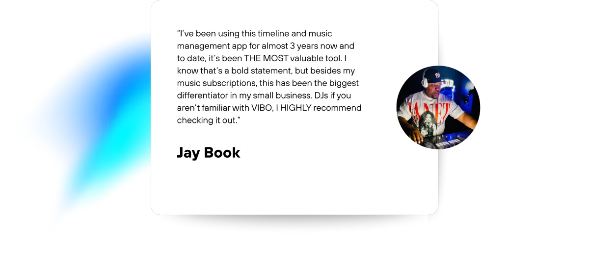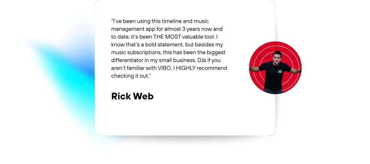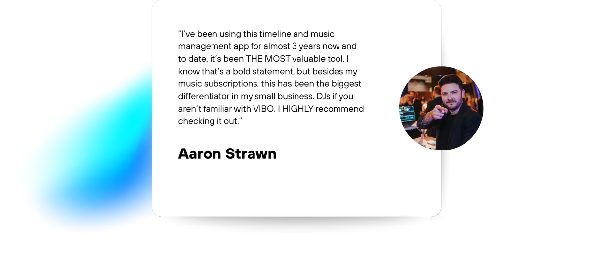Unlike other tools, Vibo is the only product that is mobile-first, designed by and only for wedding and event DJs like you. We are not trying to be everything for everyone. We are not a CRM, and we are not trying to be one.